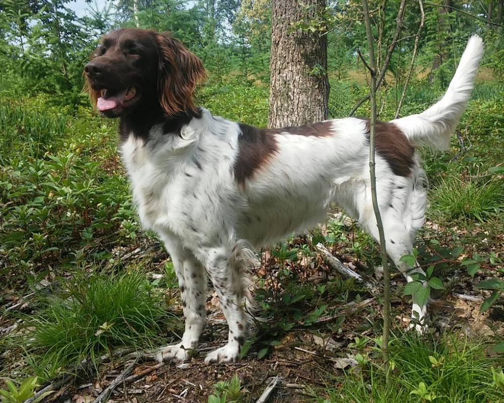 Chantalle ist eine Hündin aus meinem C-Wurf. Eine Tochter meiner Deika vom Treckeberg. Ihr Vater ist Gero vom Brockhauser Esch. Sie ist eine sehr wesensstarke und arbeitsfreudige Hündin mit viel Schärfe. Im Umgang ist sie leichtführig, kinderlieb und gehorsam. Nun ist sie im achten Feld und wird nur noch für leichte jagdliche Arbeit gebraucht.