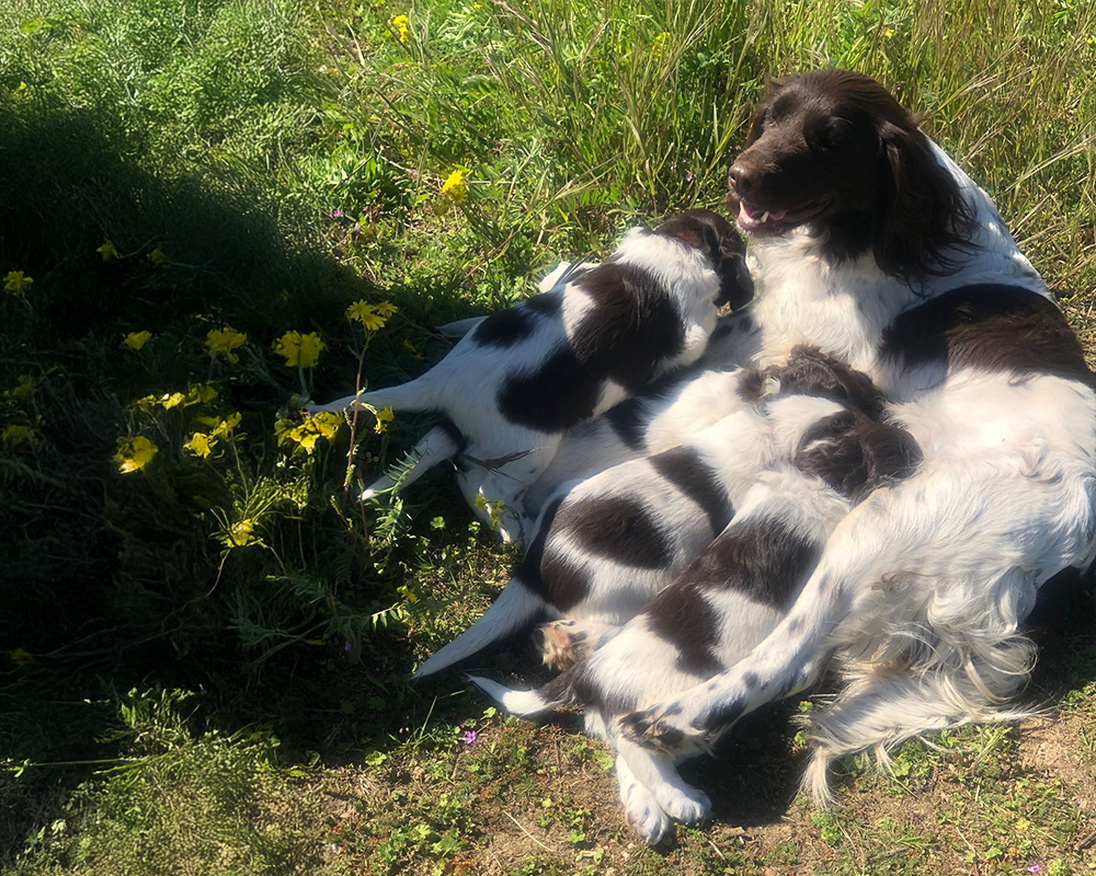 In jungen Jahren war sie eine wunderbare jagdbegleiterin und Mutterhündin. Wir haben uns gemeinsam in die Jagd und die Zucht hineingefunden. Bereits aus ihrem A-Wurf sind mehrere Deckrüden hervorgegangen und wir wurden erfolgreichster Zwinger des Jahres in unserer Landesgruppe. Heute kümmert Deika sich noch gerne um ihre Enkel und hat sich den Platz auf dem Sofa redlich verdient.